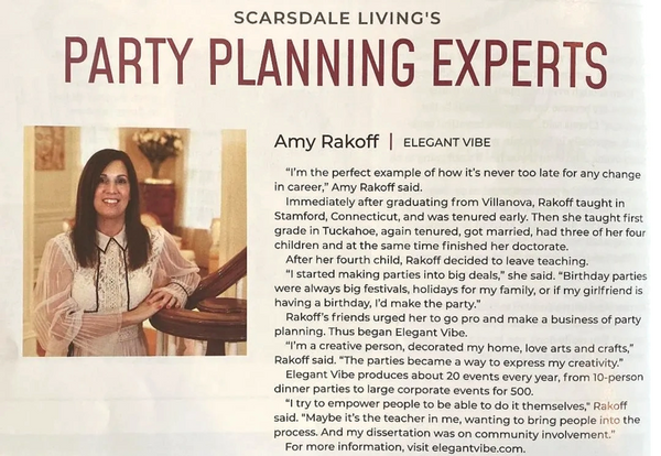 Featured in the Fall/Winter 2019 issue, Amy Rakoff was named as one of Scarsdale's Party Planning Experts.